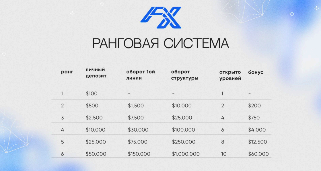 | Мин.вклад | 100$ | Рефбек | 5% |