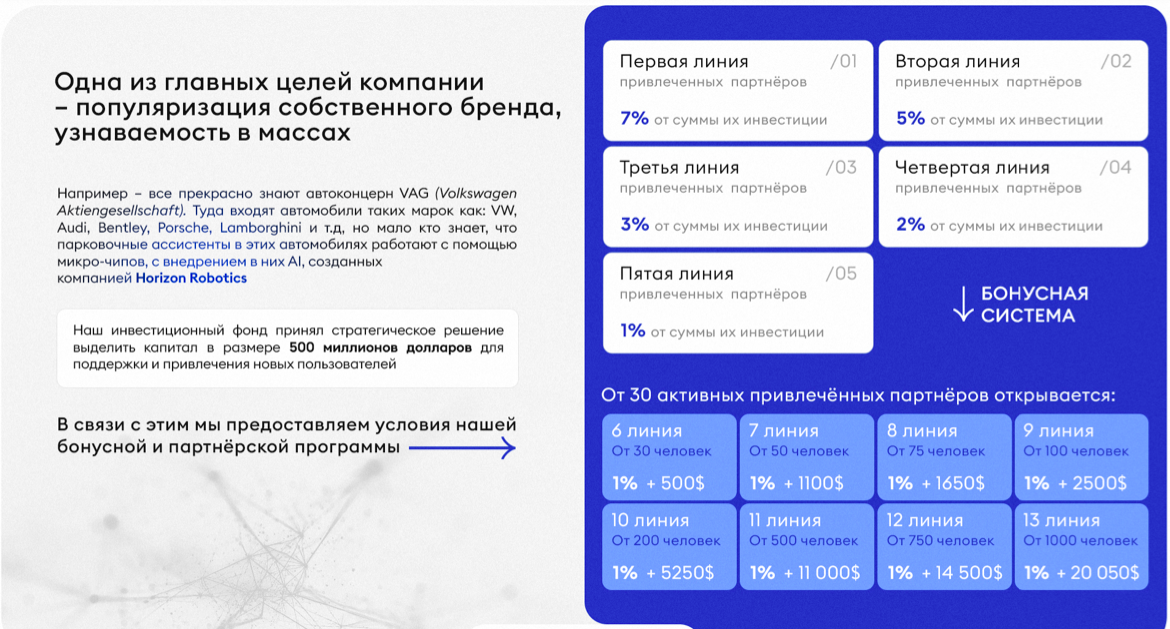 • Реферальная программа 5 уровней: 7%-5%-3%-2%-1% от депозита