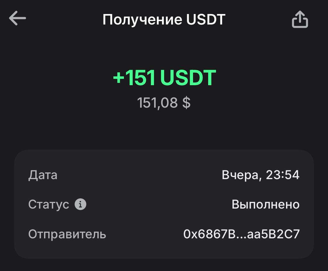 24/08/2025 07:53 | Vo*** | 150$ / 7.5$ | 0x9*** | Выплачено |