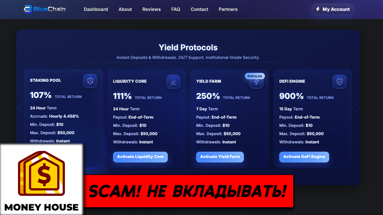 BlueChain – новый высокодоходный проект, который запустился сегодня 25 сентября. С этим админом мы с вами уже недавно работали, результатом я остался доволен. Можно было заработать до 100% чистой прибыли. Для заработка выбираем тарифы сроком на 24 часа.